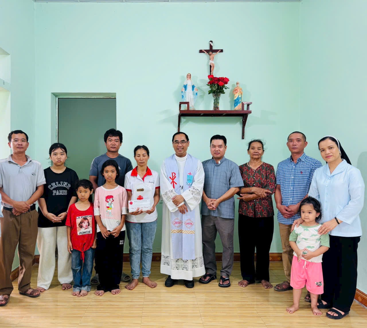 Trong hoàn cảnh khó khăn ấy, sự xuất hiện của Caritas Thanh Hóa như một tia nắng le lói. Đoàn cứu trợ đã đến thăm và hỗ trợ gia đình anh Huấn, cùng nhiều hộ dân khác bị ảnh hưởng bởi bão lũ. Món quà hơn 10 triệu đồng tuy không lớn, nhưng là sự động viên tinh thần vô cùng quý giá, giúp gia đình anh phần nào nguôi ngoai nỗi đau.
