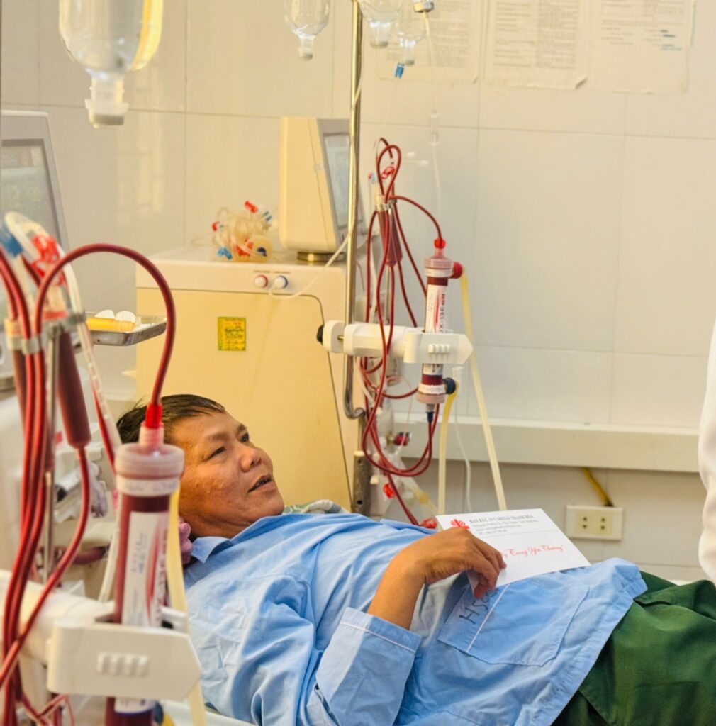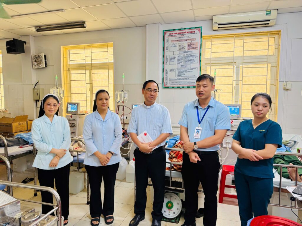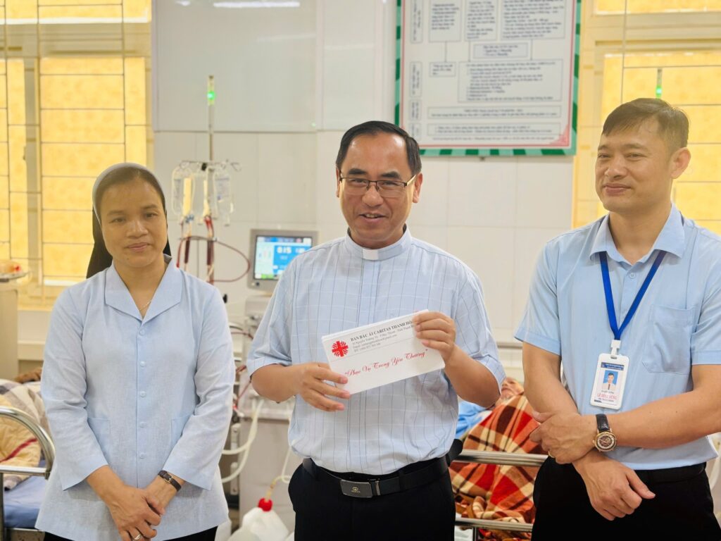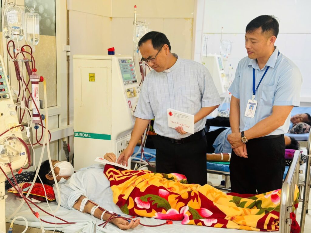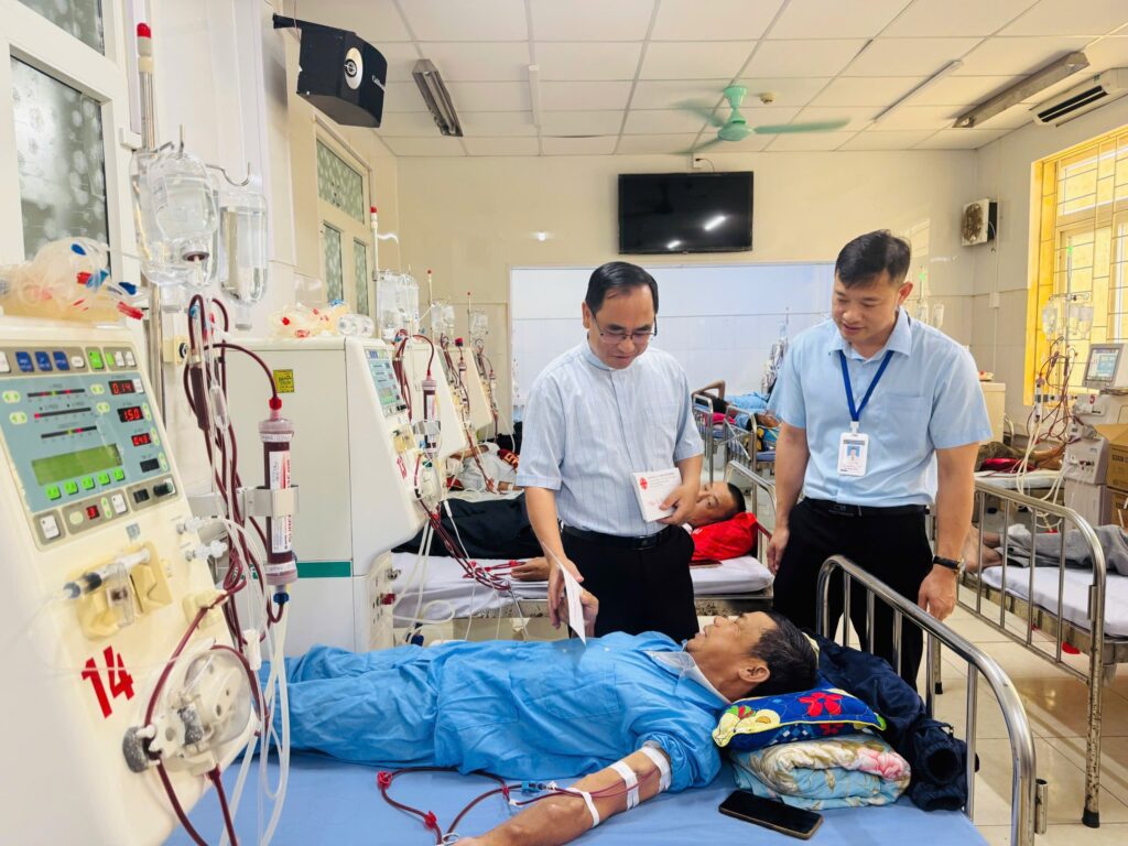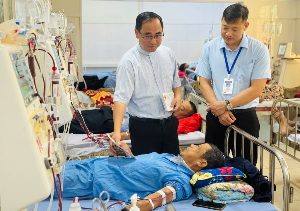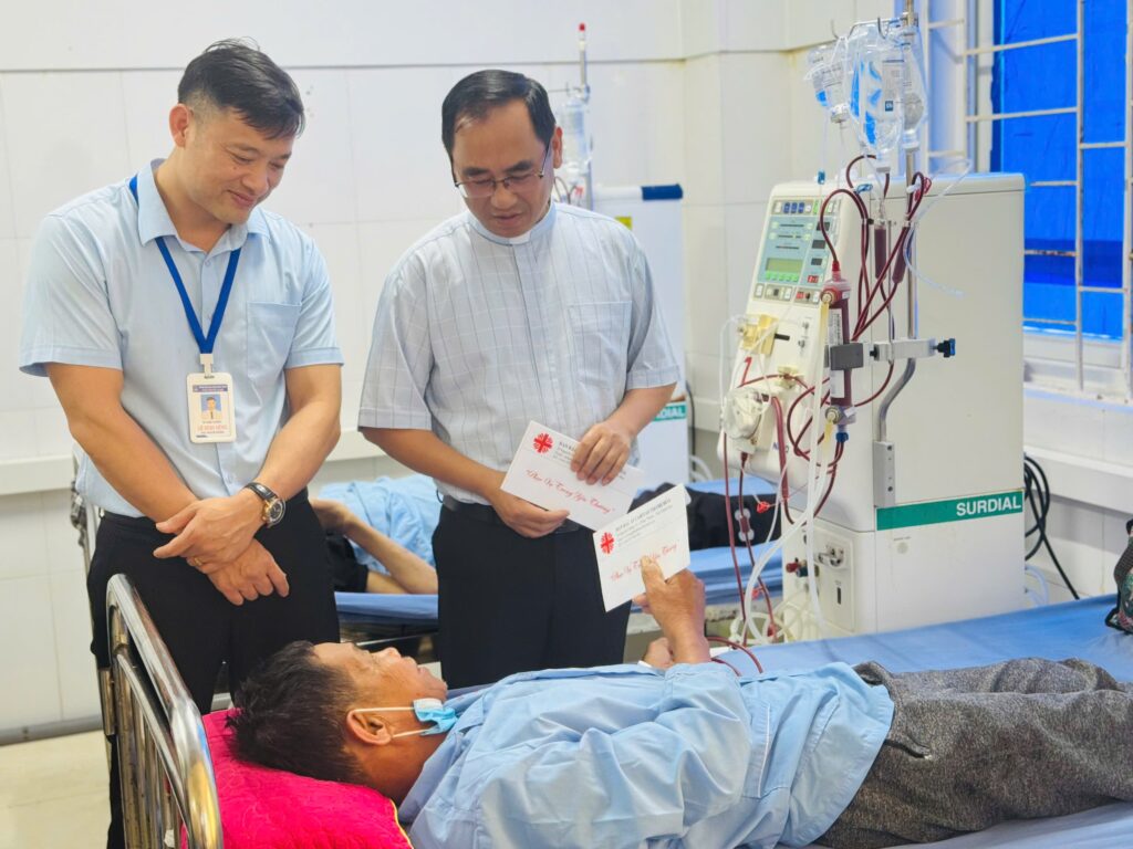 Trong không gian nồng mùi bệnh viện tại đơn vị lọc máu Bệnh viện Đa khoa Nông Cống, một buổi gặp gỡ đầy xúc động đã diễn ra. Caritas Thanh Hóa đã thay mặt hai vị ân nhân thầm lặng từ Seattle (Mỹ) trao tận tay mỗi bệnh nhân món quà 500 ngàn đồng tiền mặt.