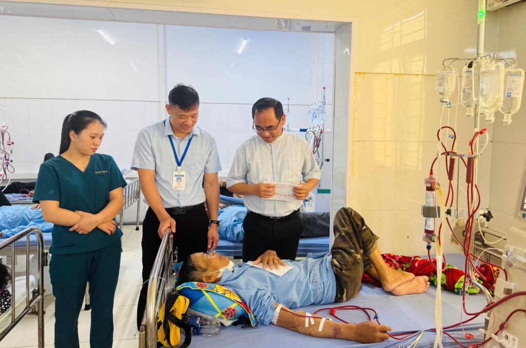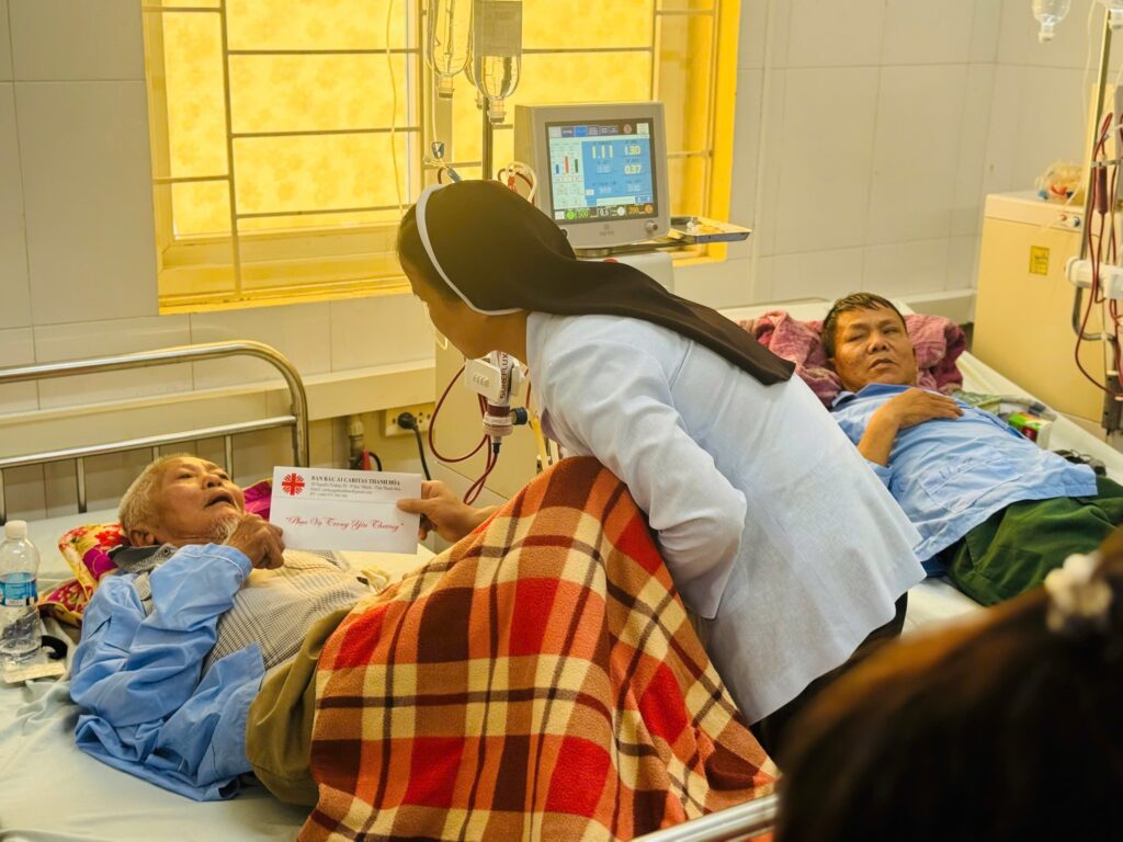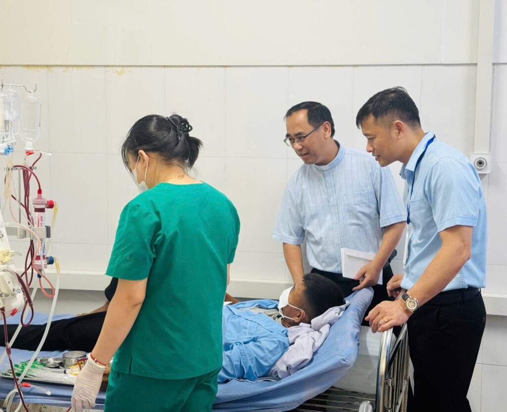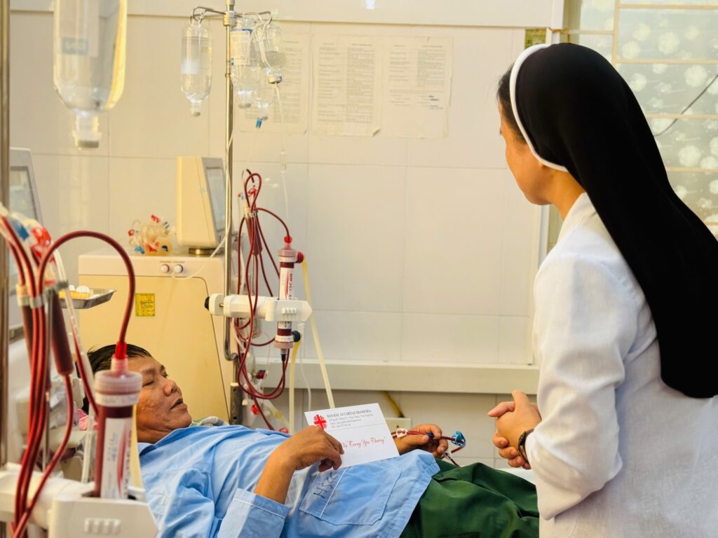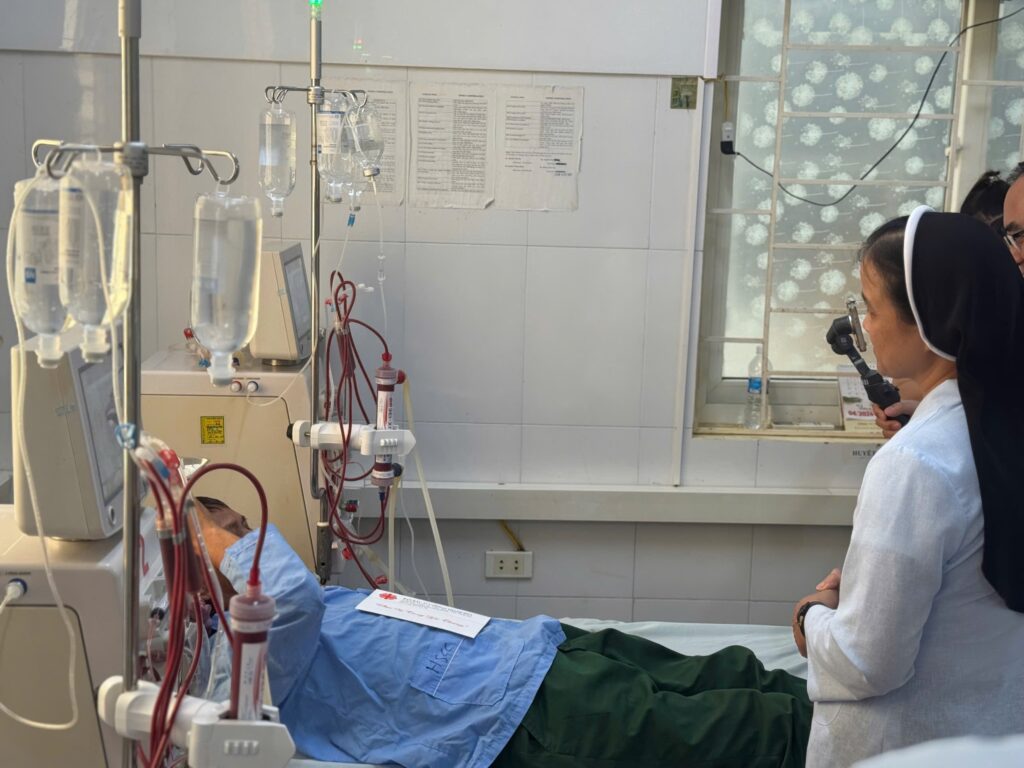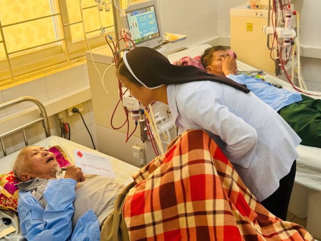 Trong không gian nồng mùi bệnh viện tại đơn vị lọc máu Bệnh viện Đa khoa Nông Cống, một buổi gặp gỡ đầy xúc động đã diễn ra. Caritas Thanh Hóa đã thay mặt hai vị ân nhân thầm lặng từ Seattle (Mỹ) trao tận tay mỗi bệnh nhân món quà 500 ngàn đồng tiền mặt.
