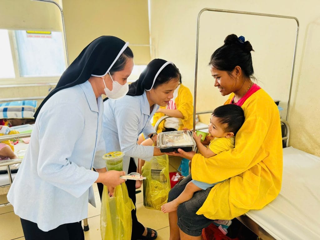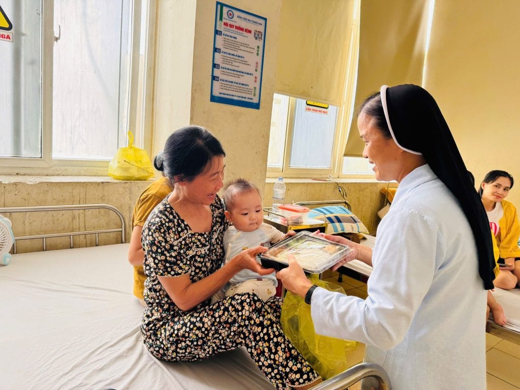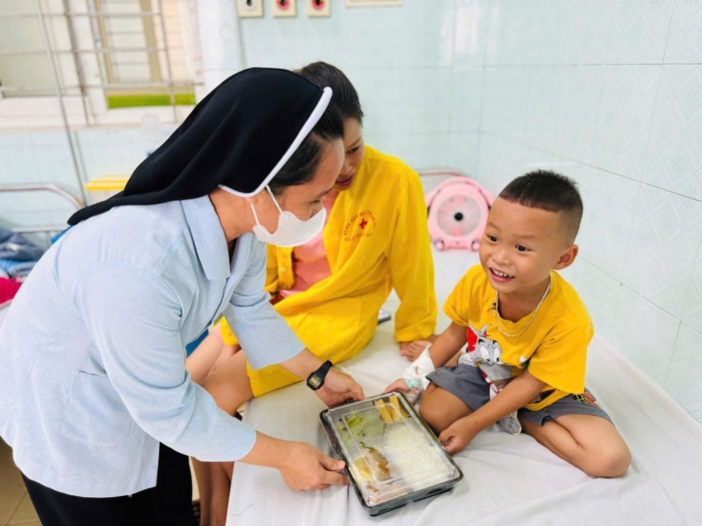Trong không khí ấm áp của tình người, sáng nay, các nhân viên của Caritas Thanh Hóa đã có mặt tại Bệnh viện Nhi Thanh Hóa với một hành động đầy ý nghĩa: phát cơm miễn phí cho các bệnh nhân nhỏ tuổi và gia đình đang điều trị. Mỗi suất cơm được chuẩn bị chu đáo, mang theo hương vị ấm áp của tình thương, đến tận tay những người đang cần giúp đỡ.