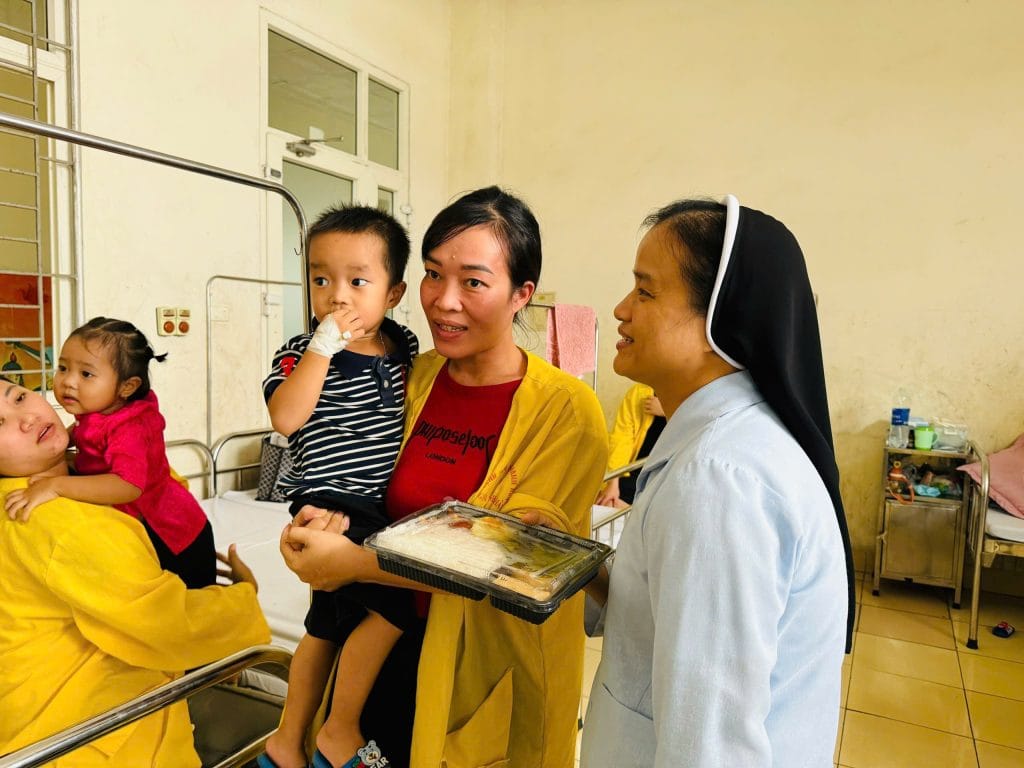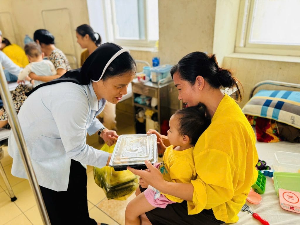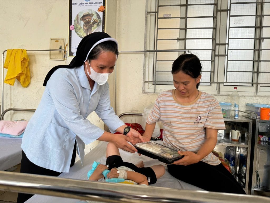 Trong không khí ấm áp của tình người, sáng nay, các nhân viên của Caritas Thanh Hóa đã có mặt tại Bệnh viện Nhi Thanh Hóa với một hành động đầy ý nghĩa: phát cơm miễn phí cho các bệnh nhân nhỏ tuổi và gia đình đang điều trị. Mỗi suất cơm được chuẩn bị chu đáo, mang theo hương vị ấm áp của tình thương, đến tận tay những người đang cần giúp đỡ.